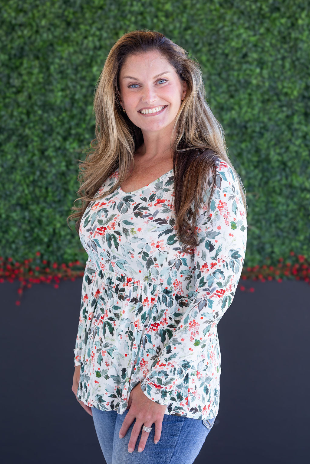 Long Sleeve Sarah Ruffle Top - Winter Berry